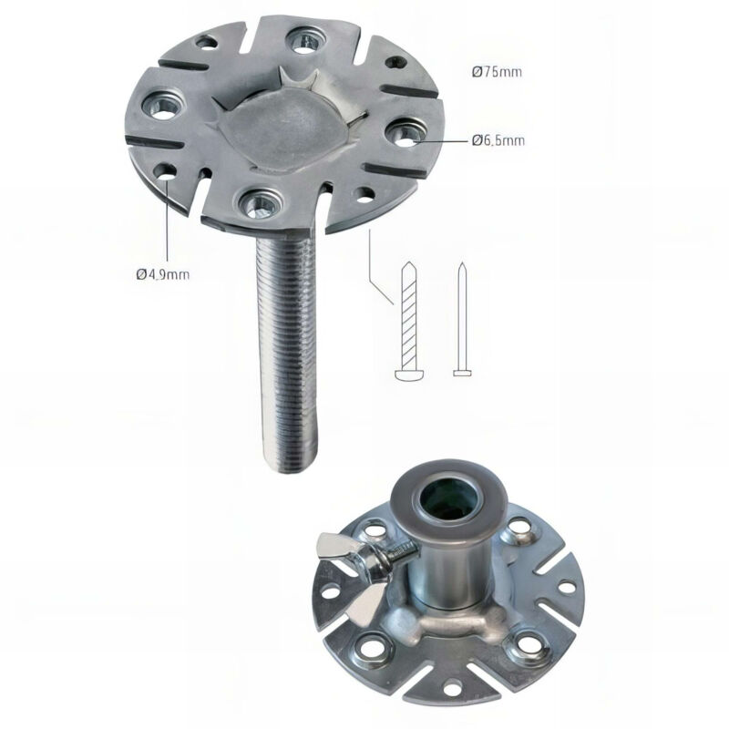 Le pied pour montage fixe PIHER 34039 est conçu en tout acier, offrant une robustesse et une durabilité exceptionnelles. Il est équipé de trous et de fentes pour la fixation de supports en bois ou en métal, permettant une installation facile et sécurisée. Ce modèle permet de fixer l'étai parallèlement au support, ce qui améliore la stabilité lors des travaux.