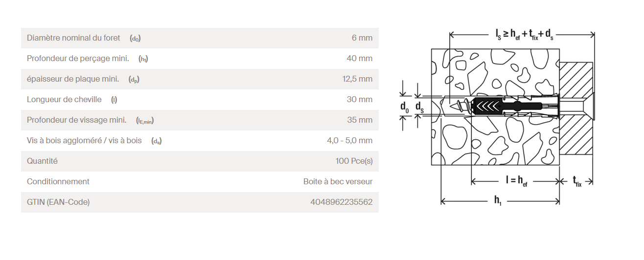 Cheville Duopower 6x30 / Boite de 100 - FISCHER - 555006